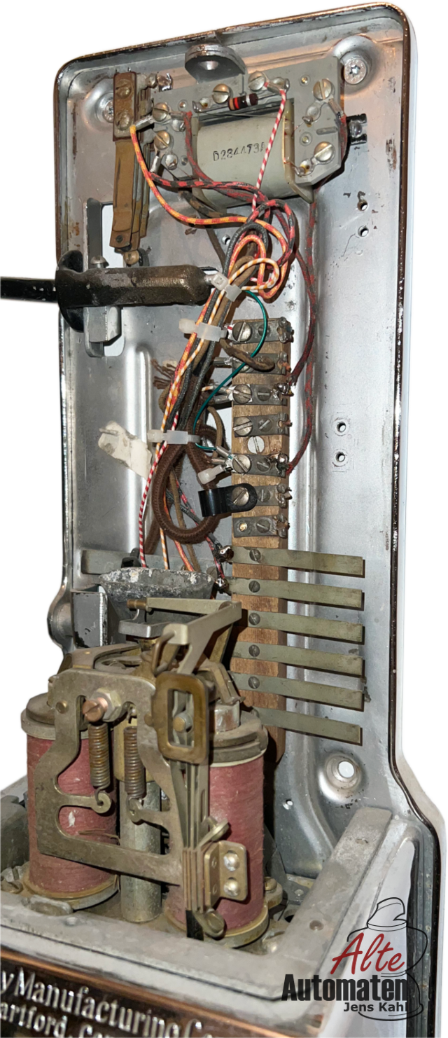 Einen eignen Münzprüfer gibt es nicht. Die Münzen ergeben je nach Münze einen unterschiedlichen Glockenton. Früher hat der Operator, später eine Elektronik erkannt, ob und welche Münze eingeworfen wurde und das Gespräch wurde freigegeben. Dieses Verfahren setzte die Deutsche Reichspost in den Anfangsjahren auch ein. Durch dieses Verfahren war es nötigt, dass man zuerst den Operator angerufen hat, erst dann konnte man den eigentlichen Teilnehmer anrufen. Später wurde dieser erste Zwischenschritt durch eine elektronische Lösung vereinfacht.